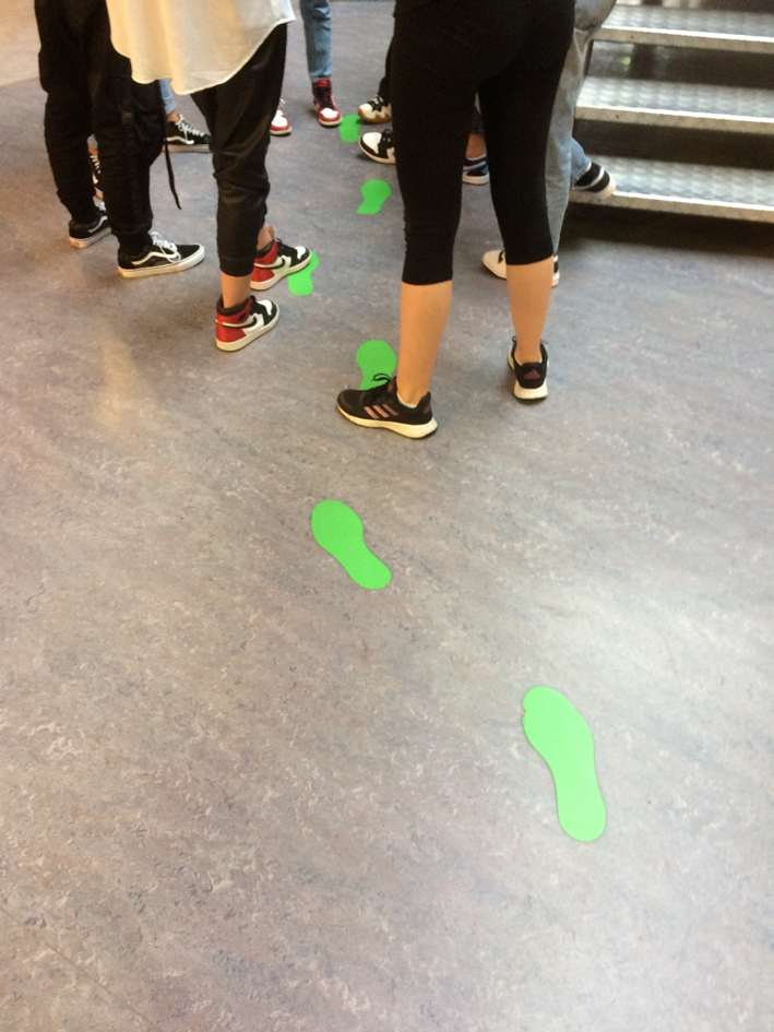 Op Bolognalaan 101 werden de rokers via een ingenieus pad van groene voetsporen naar de binnentuin geleid waar de asbakken uitnodigend waren opgesteld. Het probleem dat zich steeds vaker voordeed bij alle ingangen van HU-gebouwen was namelijk, dat je eerst een cordon rokers moest passeren om het gebouw te betreden. Dat deed afbreuk aan het frisse en fruitige imago dat de HU zo graag mag uitstralen. Met rode strepen op de tegels en duidelijke symbolen werden rokers gemaand op afstand van de ingangen te blijven tijdens het roken.