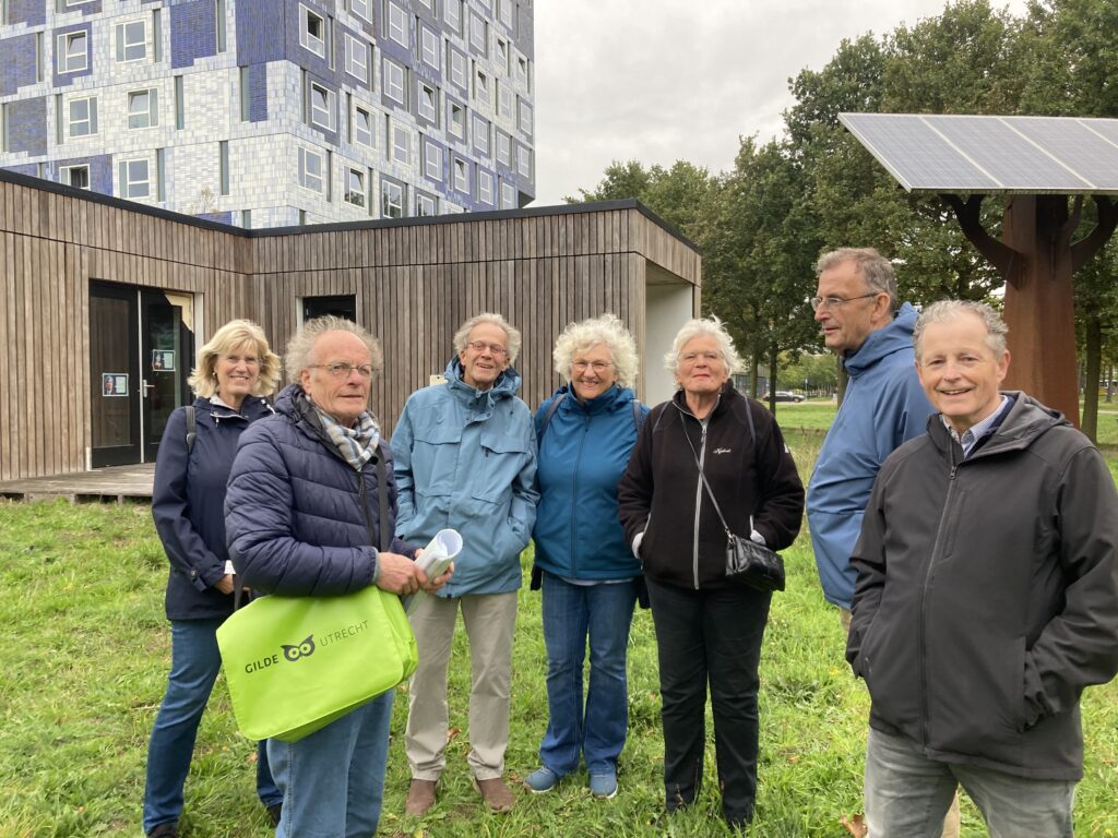 In het tweede deel van het programma trokken we erop uit in het Utrecht Science Park (voorheen: de Uithof) en we wandelden door de omgeving. Vanzelfsprekend ging dat onder de deskundige leiding van Hans Merkx, oud-voorzitter van VOM HU en tegenwoordig stadsgids van Utrecht. Hans is een fascinerende verteller, die heel veel kennis heeft en daar op een boeiende wijze over kan vertellen. Onder zijn leiding komt de historie als het ware tot leven.